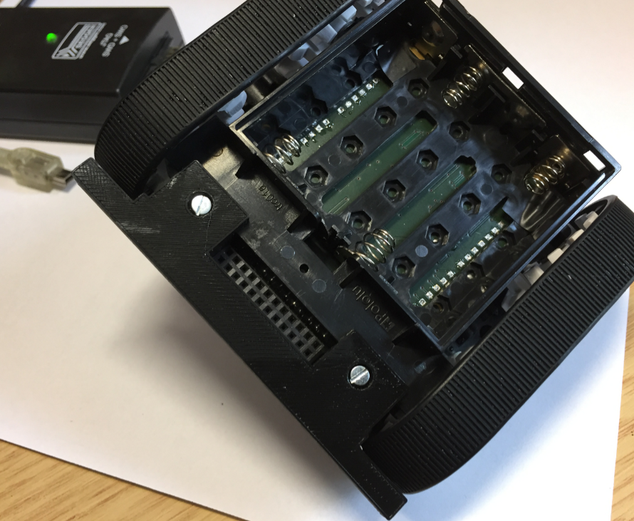 That holder holds two sensors which are connected to the ToF sensor shield on the robot. The Shield allows to address each sensor individually (as they share by default the same I²C address) plus features a FET to power the sensors on and off.