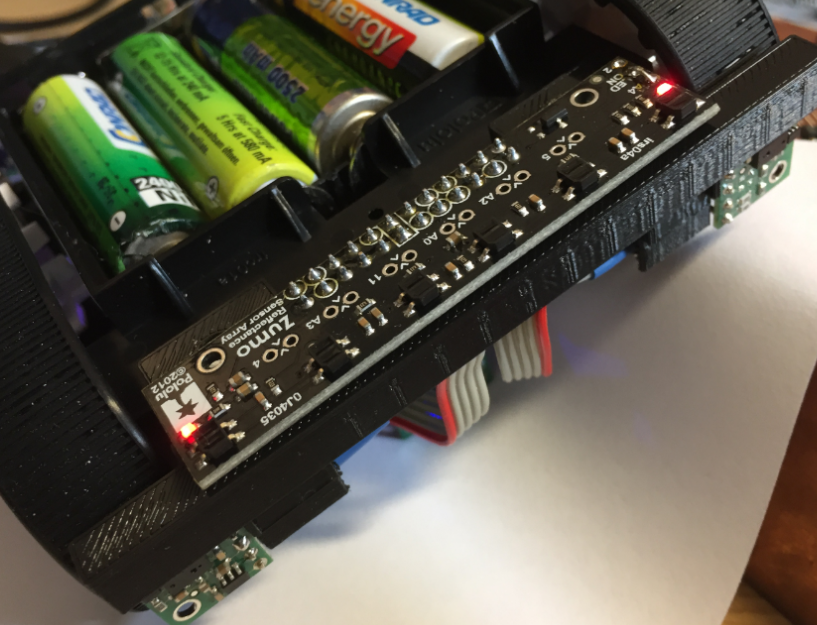 The carrier for the ToF sensors is sitting on top of the Pololu infrared sensors: