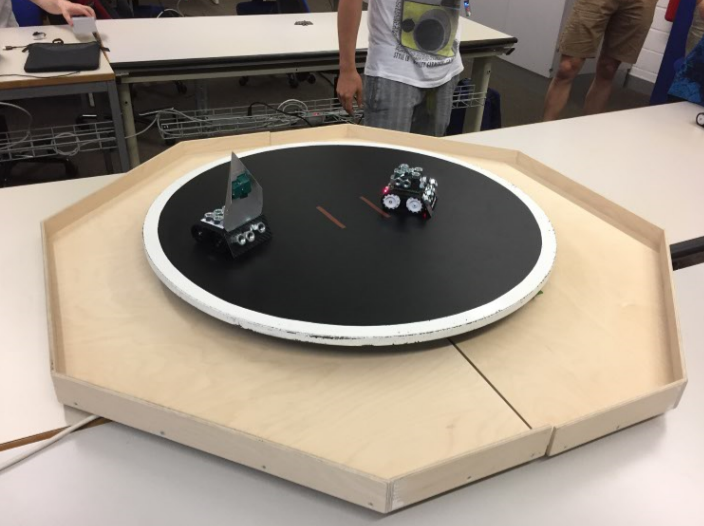 Walls around the Sumo Dohyo prevented the robots to fall off the table: