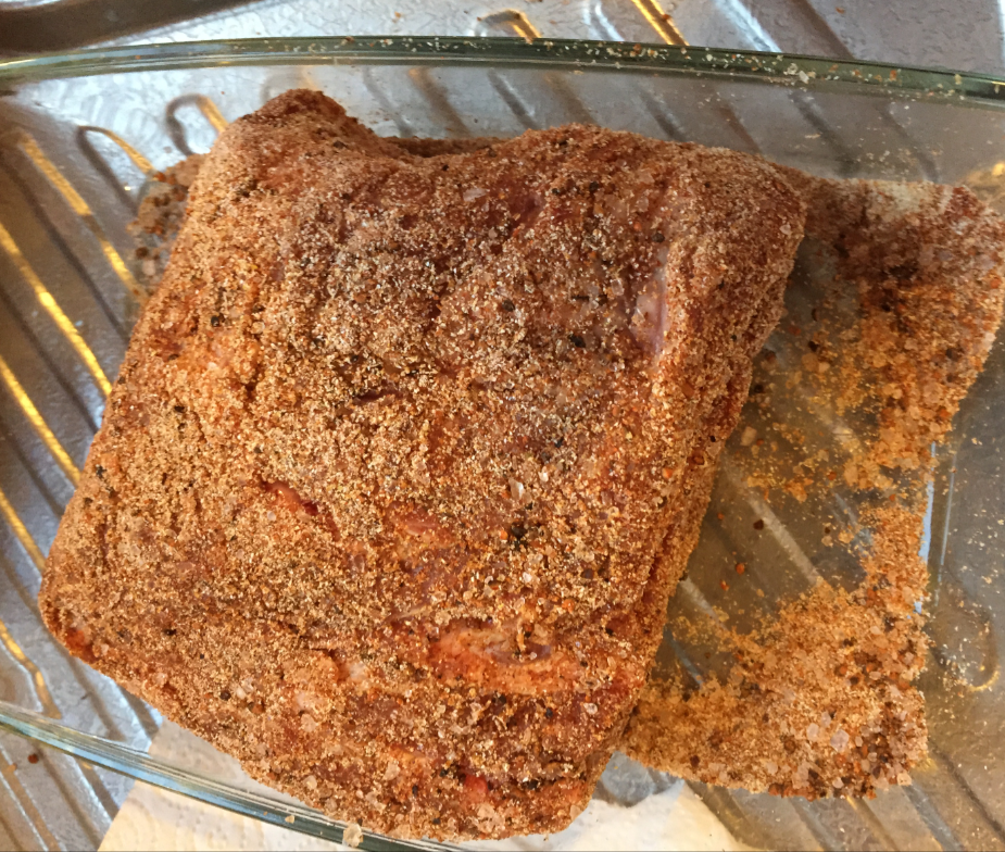 Applied rub to the meat: