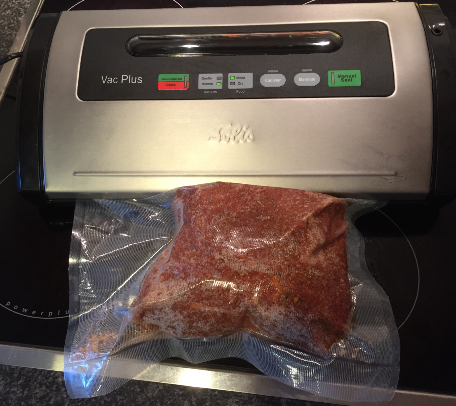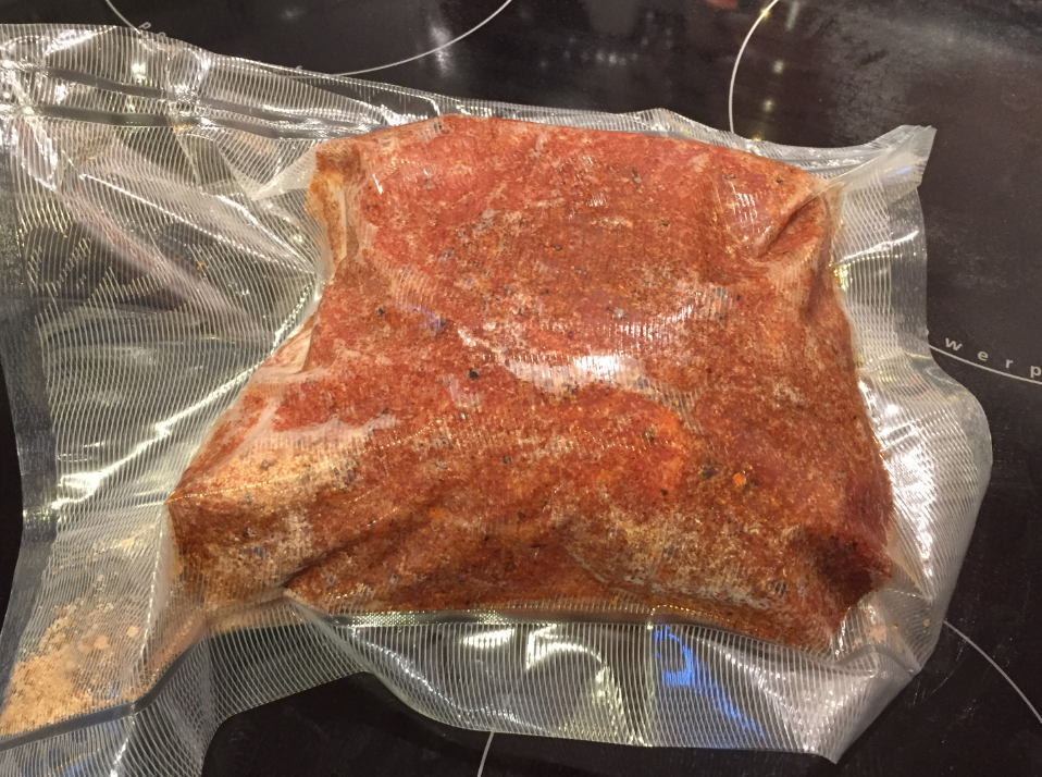Here the meat in the bag, ready to put into the water: