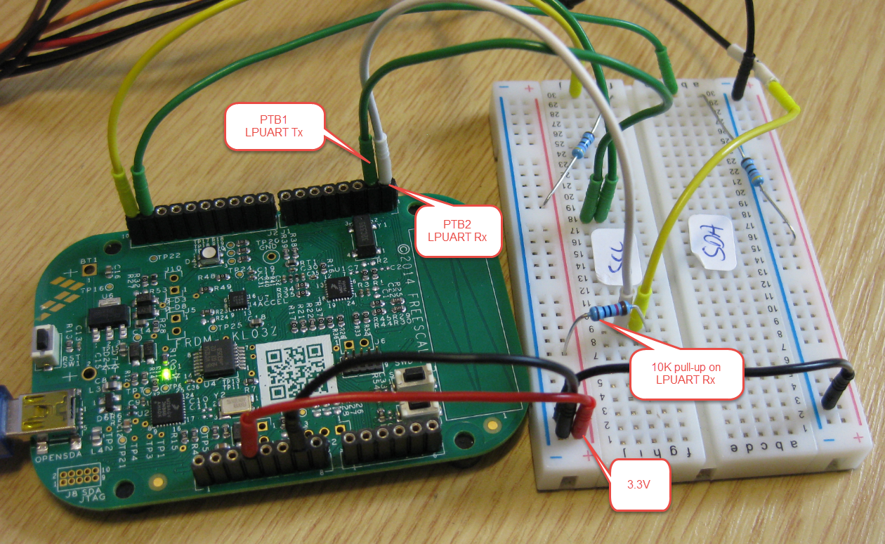 10k Pull-Up on LPUART Rx Pin Published July 11, 2017 at 1260 × 774 in Getting Started: ROM Bootloader on the NXP FRDM-KL03Z Board 10k Pull-Up on LPUART Rx Pin 10k Pull-Up on LPUART Rx Pin