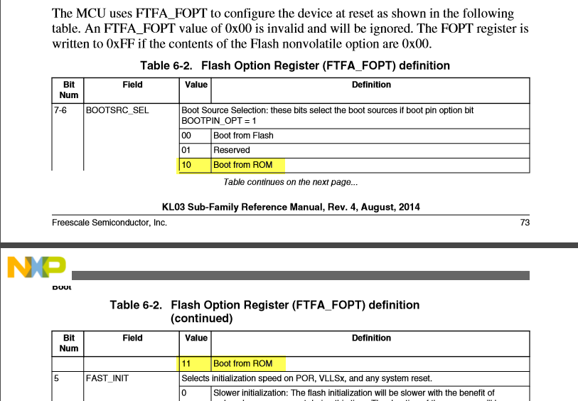 BOOTSRC_SEL Published July 11, 2017 at 813 × 564 in Getting Started: ROM Bootloader on the NXP FRDM-KL03Z Board BOOTSRC_SEL BOOTSRC_SEL