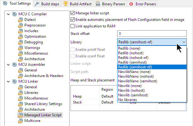 MCUXpresso IDE Library Options Published August 21, 2017 at 616 × 404 in Tutorial: Porting BLE+NRF Kinetis Design Studio Project to MCUXpresso IDE MCUXpresso IDE Library Options MCUXpresso IDE Library Options