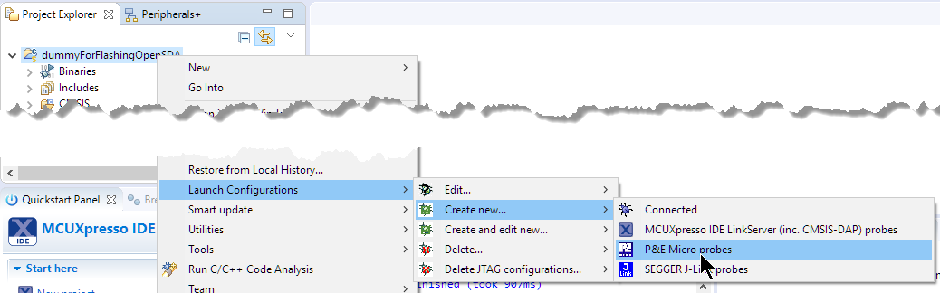 In this post I show how to re-program the OpenSDA V2.x bootloader with the MCUXpresso IDE V10.0.2, using the P&E Universal Multilink. A JTAG/SWD probe has to be used, it is not possible to reflash and fix the OpenSDA bootloader on the Kinetis K20 without it.