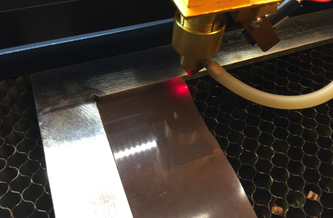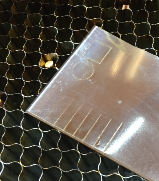 Below the three different kind of sheets in the laser cutter after doing some test cuts: