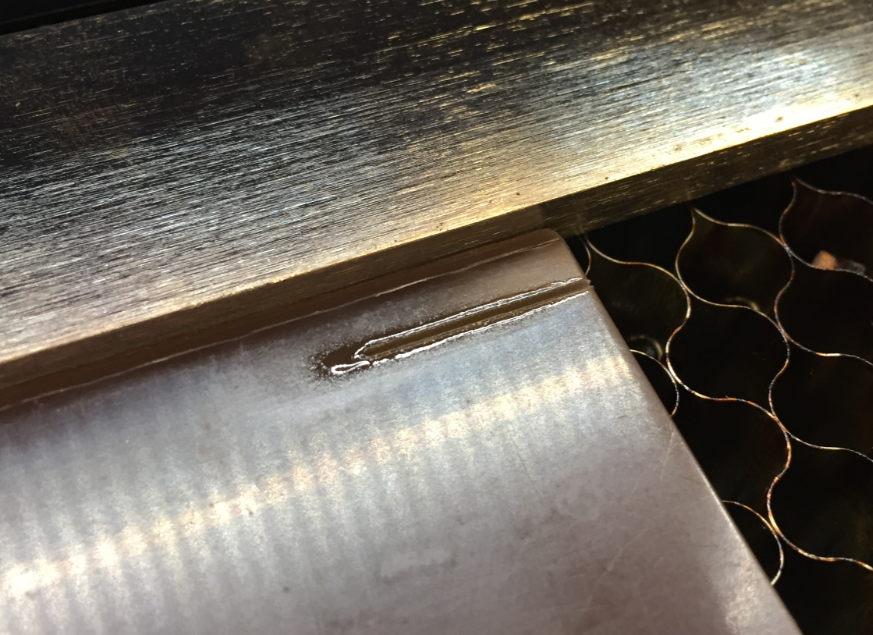 So I did not expect to cut through the 8mm sheet. With lasering the lines twice (5 lines on the left) I was close to get through it, only with a third pass I was able to get through the material.