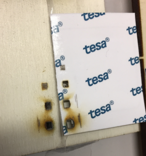 So my 50 Watt laser is too powerful for this kind of application. Tesa did not specify the power used/needed, but I think for such an application an engraver in the 5-10 Watt or below should be used. So I admit that my experiment failed, but anyway that would have been an interesting application :-).