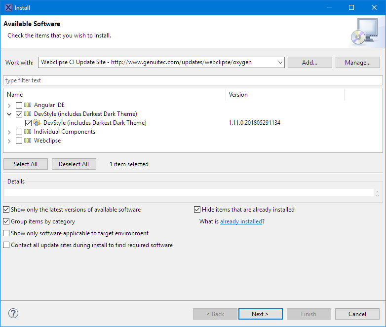 Installation of DevStyle Published May 31, 2018 at 782 × 663 in Installing Darkest Theme with MCUXpresso IDE 10.2 Installation of DevStyle Installation of DevStyle