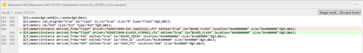 💡 The Embedded Artists documentation suggests to add this file to the SDK. But in that case the SDK will always use that file for all i.MX RT105x projects. I recommend to manually place the file into the XiP folder.