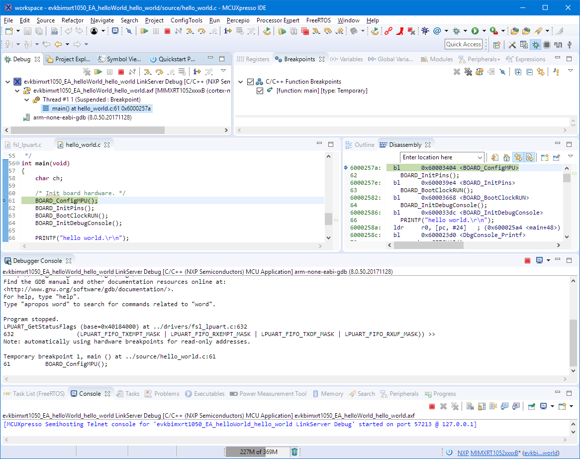 Then I’m able to debug the board with the MCUXpresso IDE :-):