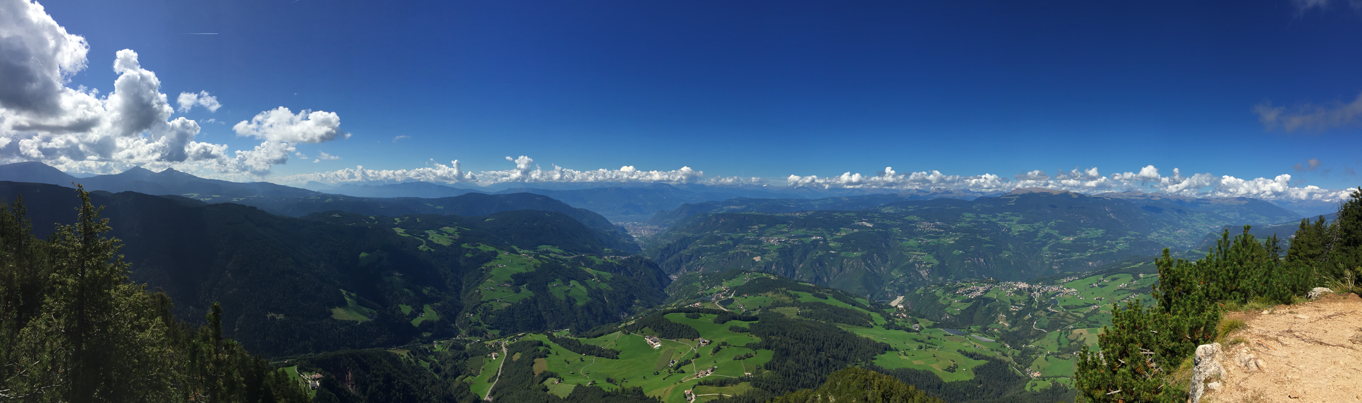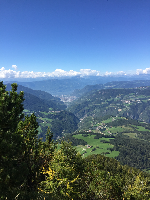 With a beautiful view down to Bozen/Bolzano, with the Brenner highway down in the deep valley where we can see many trucks going up and down: