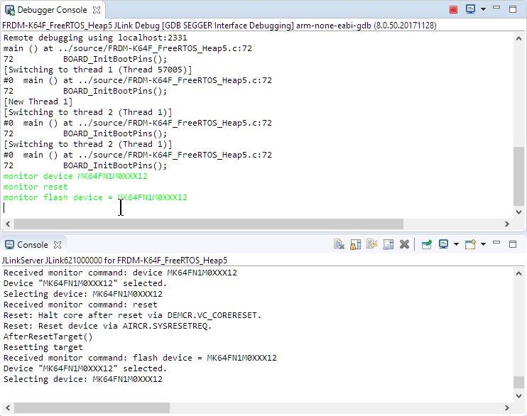 The steps below are using the NXP MCUXpresso IDE 10.2 with the SEGGER J-Link V6.40, but can work the same or very similar for any Eclipse-GDB combination.