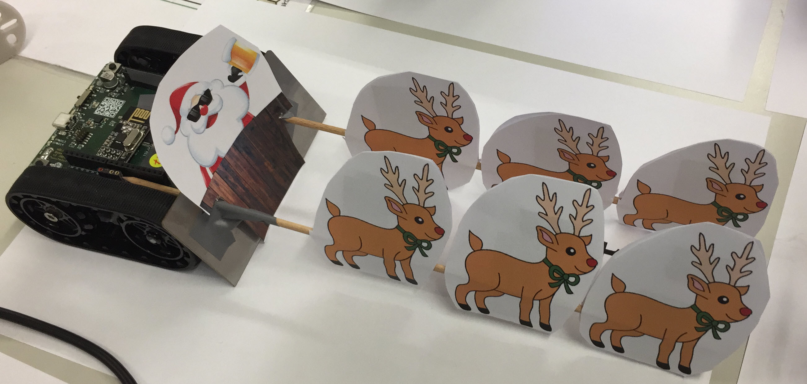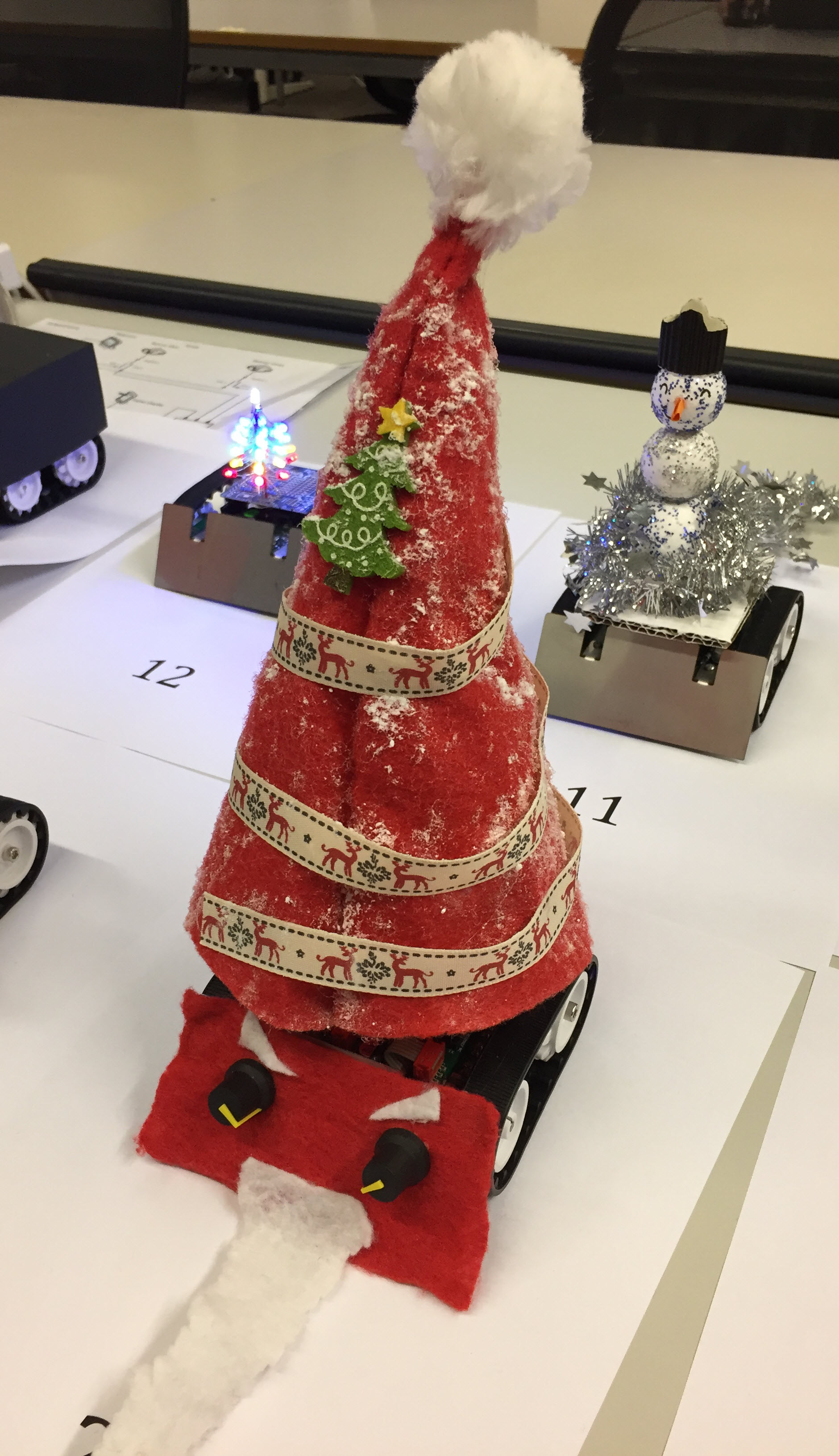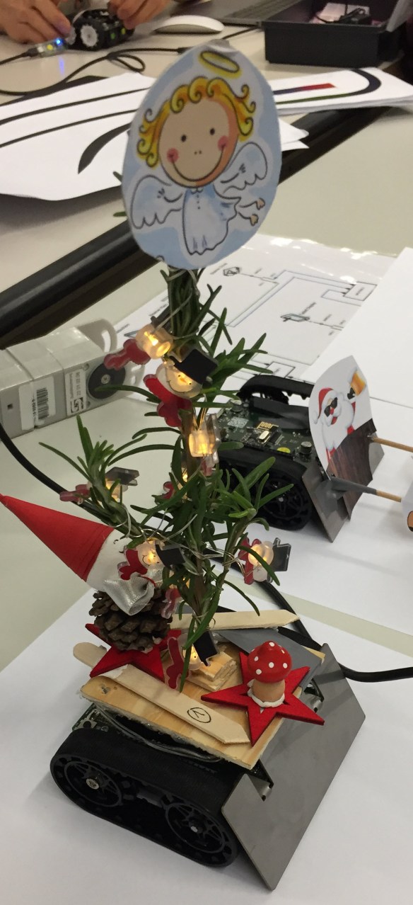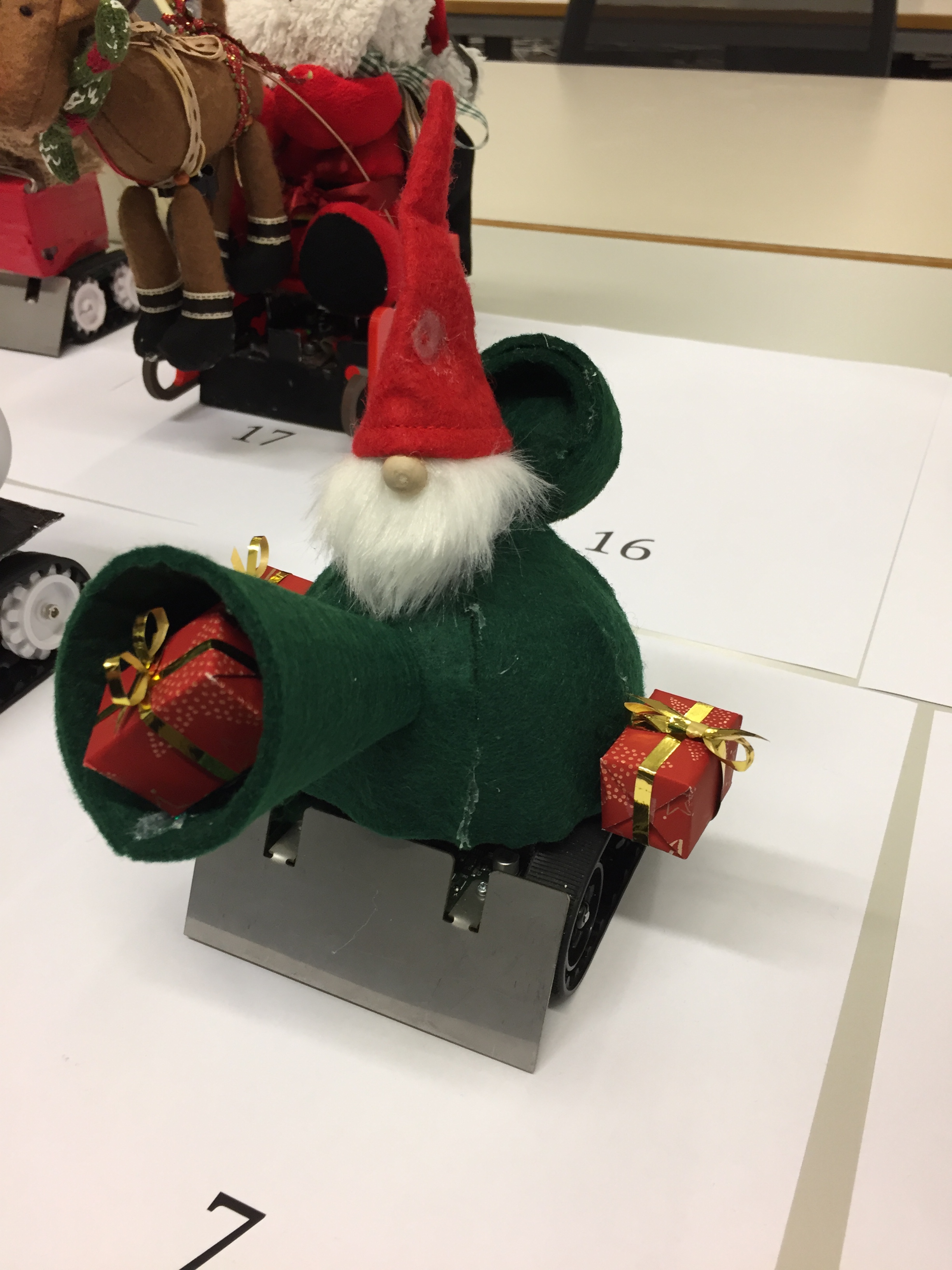 The last challenge of the robotics course of this Fall semester had to be something special: This time it was about a ‘beauty contest’ followed by a line following challenge. Motto: Merry Christmas Time!