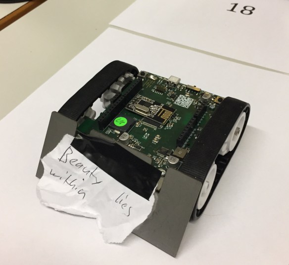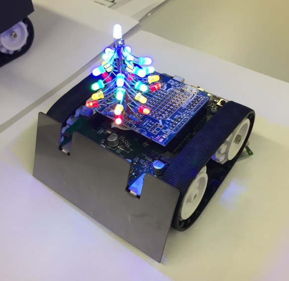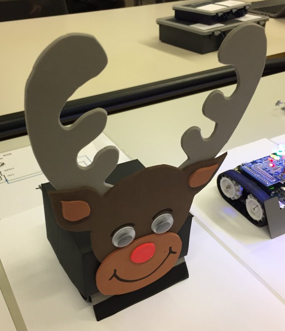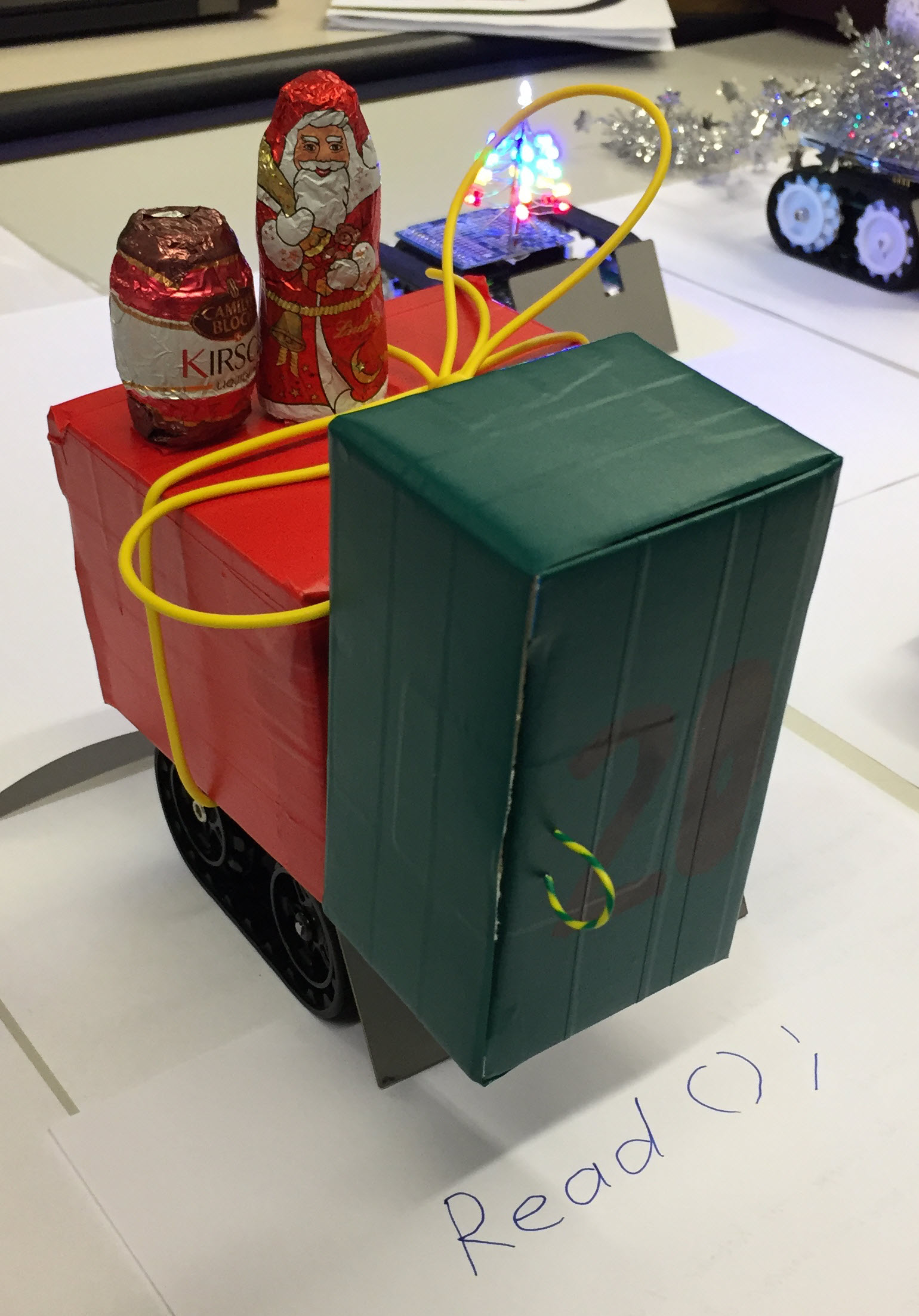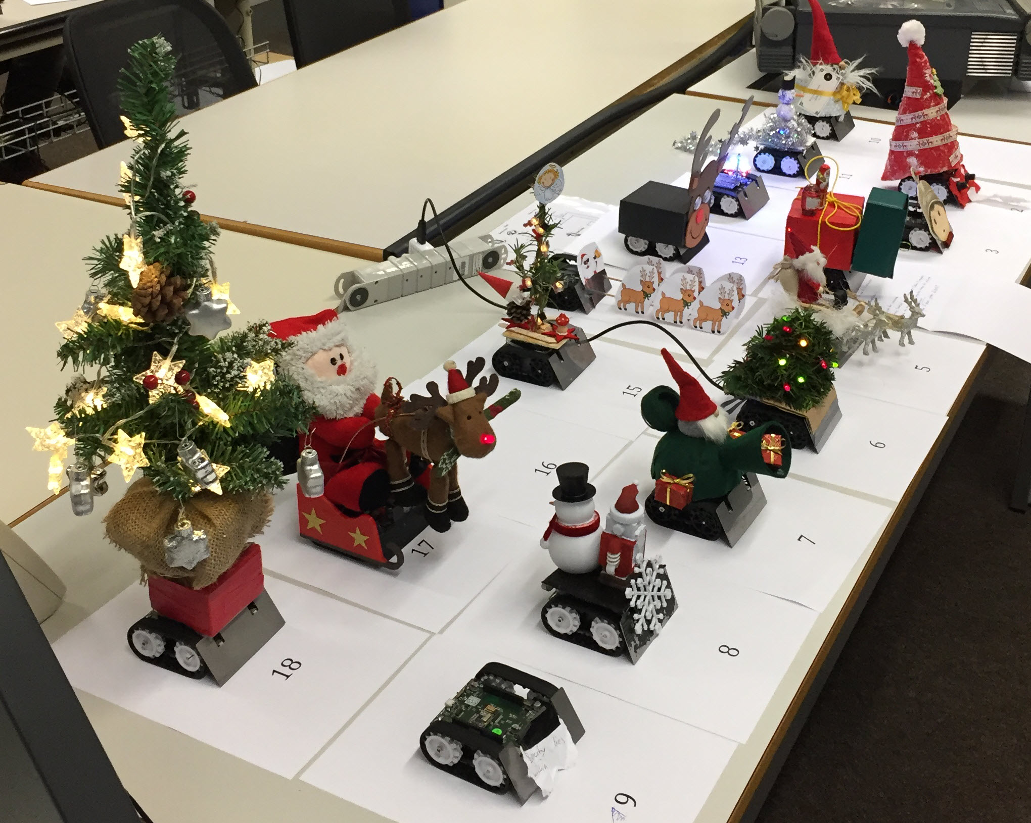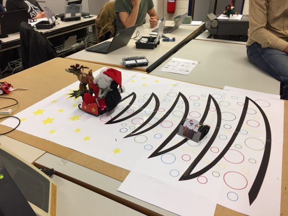 The last challenge of the robotics course of this Fall semester had to be something special: This time it was about a ‘beauty contest’ followed by a line following challenge. Motto: Merry Christmas Time!