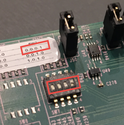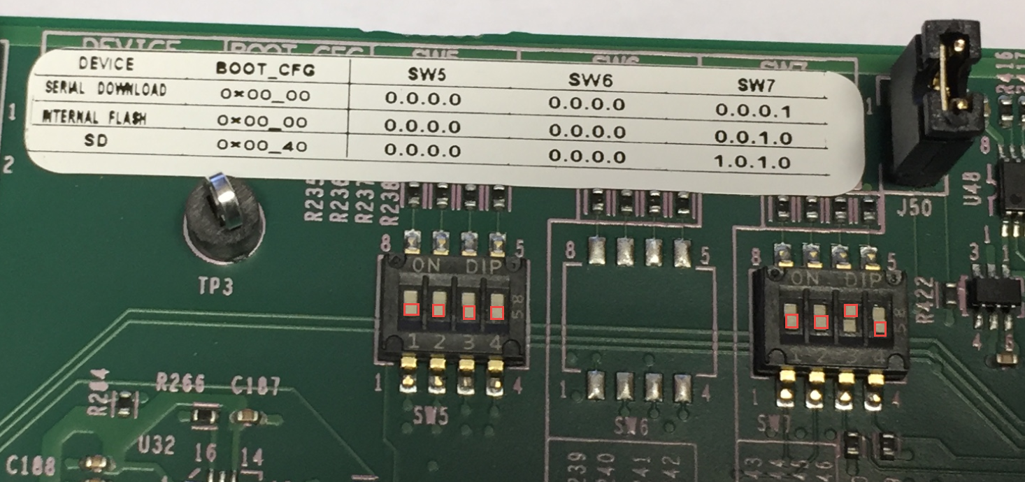 - Boot the board in serial download mode with SW7 set to 0001: