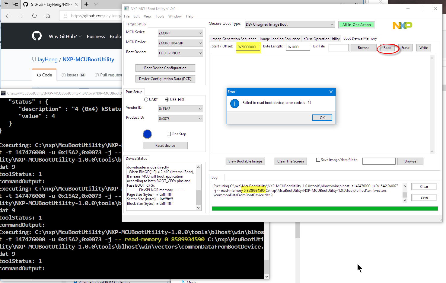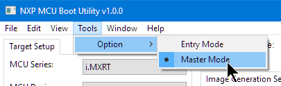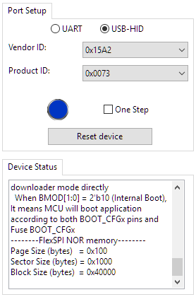 - Follow the instructions from https://github.com/JayHeng/NXP-MCUBootUtility/