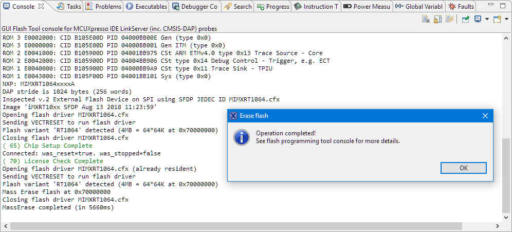 - This has set all the flash memory cells to 0xffff’fffff. What is missing is that the correct Flash descriptor is programmed. This is done with the MCUXpresso IDE. Open the GUI Flash Tool in the MCUXpresso IDE with a working project (e.g. blinky) selected for the RT1064: