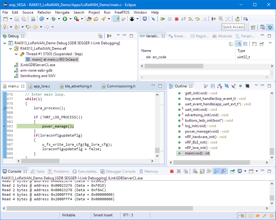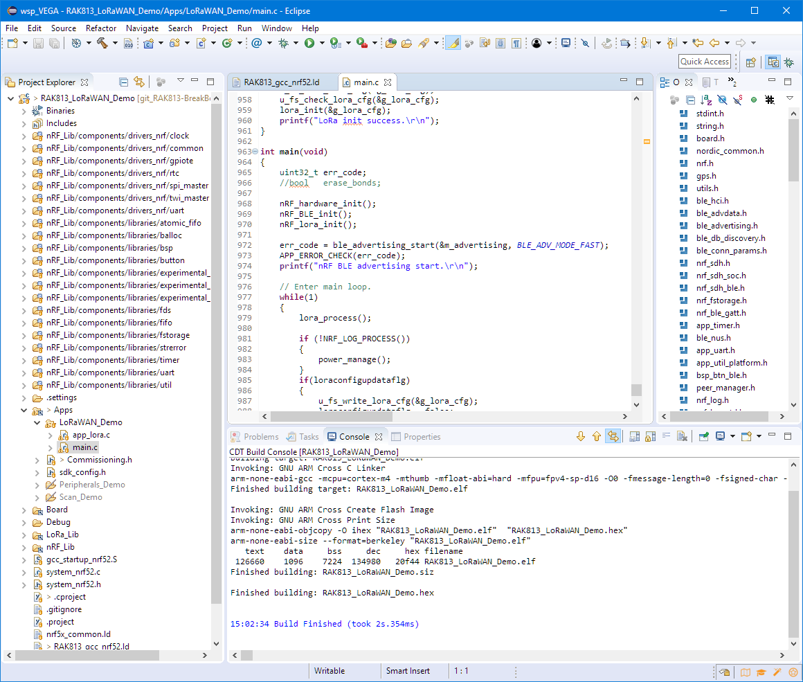 Because the original projects provided by RAK Wireless are for IAR and Keil only, I have ported them to Eclipse: that way free-of-charge IDE and compiler can be used.