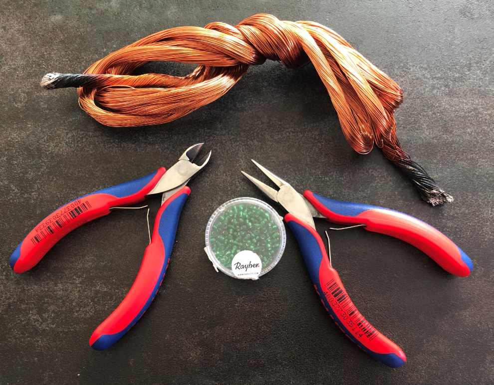 At the university we collect and recycle: bottles, batteries, glass, electronics and metal. Somebody did not have any use for a bunch of copper wires. I thought: there must be a better second live for it. This is how it looks: