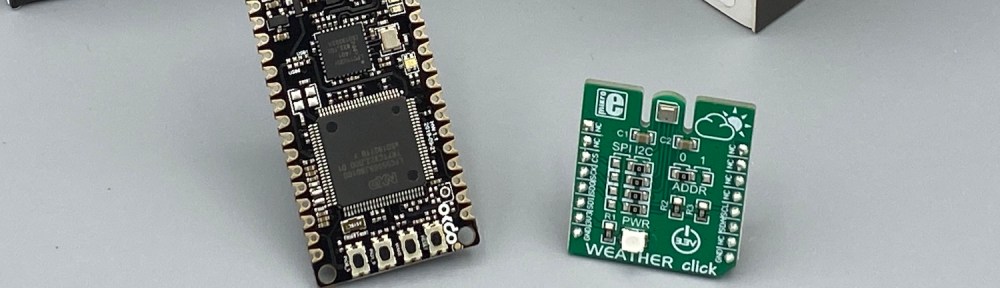 I selected the Bosch BME280 environmental sensor as the heart of my OKdo E1-based weather station. It is convenient to use, and I can prototype with the Mikroe Weather Click board MIKROE-1978. But the sensor is accessed over I2C, and that is my least favourite of the communication interfaces. In this short tutorial, I show you how the MCUXpresso Config tools (Pins, Clocks, Peripherals) are used to set up the I2C driver from the MCUXpresso lpcxpresso55S69 SDK. And very quickly, I am able to communicate with the BME280 sensor.
