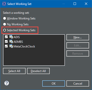 Next, select the ones to be in the working set. Make sure to have the option ‘Selected Working Sets’ enabled: