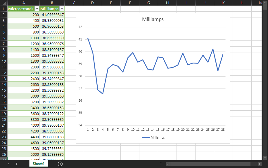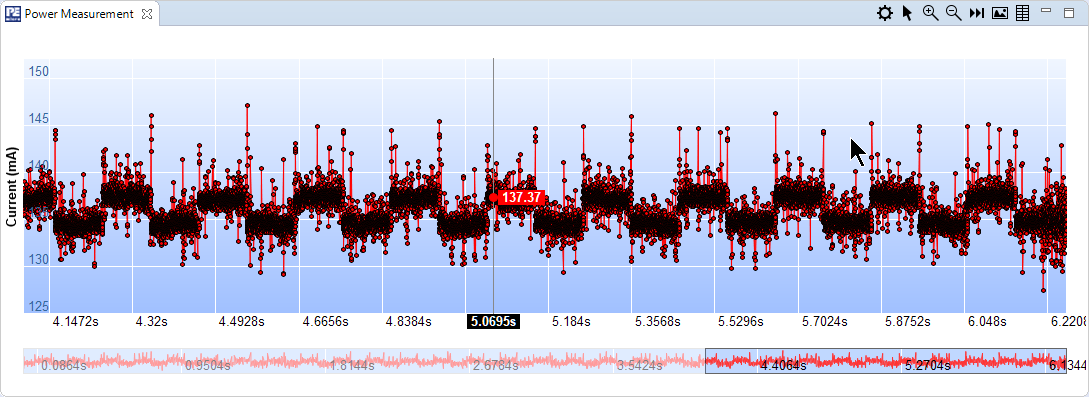 One thing to keep in mind is that the measurement is on a board level and through the debug connector: This gives a good overall view, but not much detail about individual components (e.g. MCU alone): for this I use dedicated measurement points.
