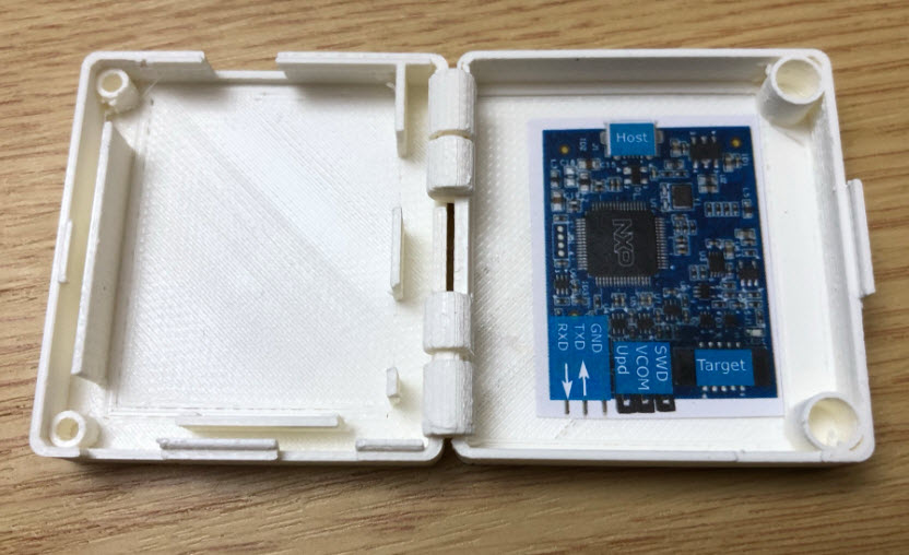 If you are looking for an inexpensive, small and still powerful debug probe for NXP Kinetis, LPC and i.MX RT MCUs, then have a look at the NXP MCU-Link. Compared to the LPC-Link it is not only smaller, it costs only half the price and comes with a handy USB-2-Serial adapter cable. And I hope the 3D printed enclosure (design available on GitHub, see links below) is something you find useful too. I’m definitely going to add more of these probes to my inventory, and I’m sure students will like it too.
