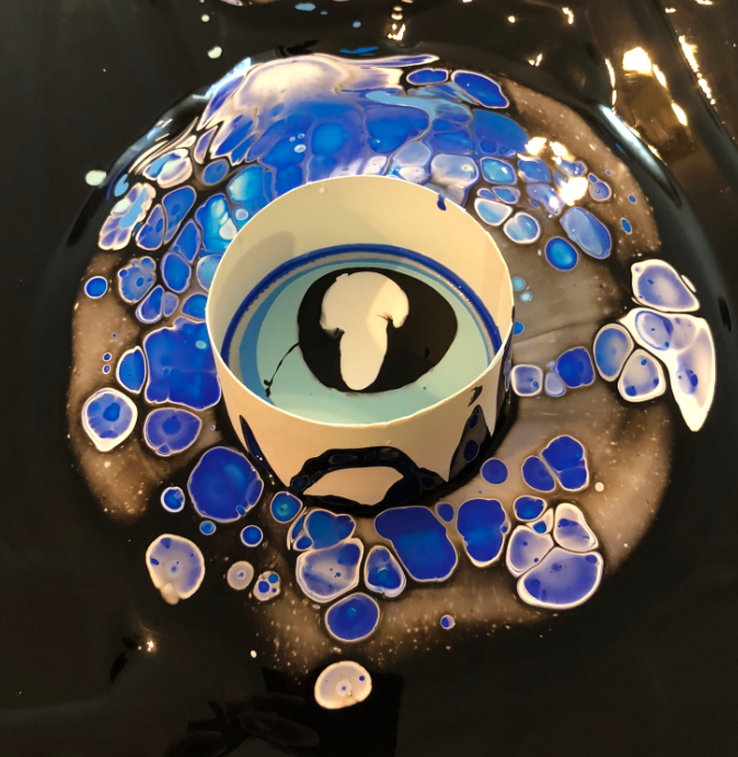 Pouring colors into the cups creates a ‘cell’ effect:
