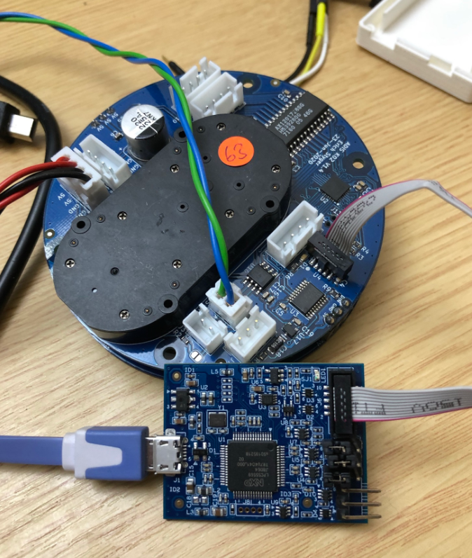 Below pictures and videos of the current V3 build. The boards get programmed with a standard 10 pin SWD interface, e.g. with the NXP MCU-Link: