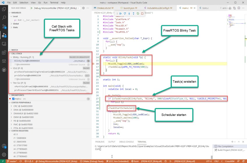 VisualStudioCode with FreeRTOS Published May 31, 2021 at 1472 × 976 in Visual Studio Code for C/C++ with ARM Cortex-M: Part 7 – FreeRTOS
