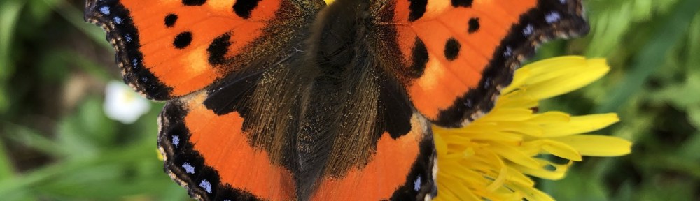 Kleiner Fuchs (German), Small Tortoiseshell (English) or Algais Urticae is a colorful mid-size butterfly, found in most parts of Europe and across Asia. The caterpillars feed on nettles. With intensive farming and agriculture, nettles have been reduced and butterflies like this one have been impacted. With the recent trend to have more natural meadows, the population of butterflies like this one starts growing again. I hope to see more of them this year!