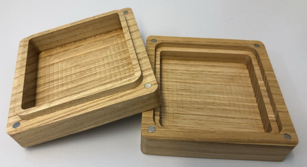 Each piece has pockets for magnets (total 8). The magnets are ‘press-fit’ and keep the bottom and lid part nicely together.