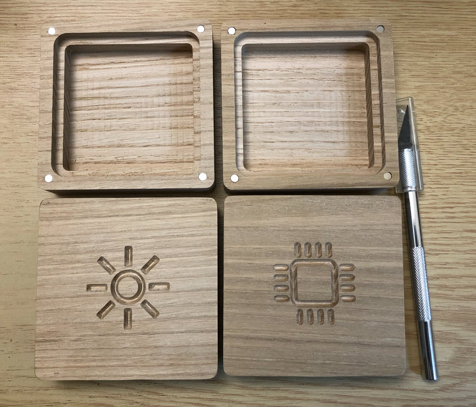 The design has been created with the help of Inkscape for the inlays, and Carbide Create for the boxes itself: