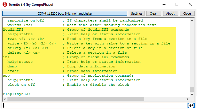 Many embedded systems application need to store some kind of data in a persistent way: calibration values, settings or log information. For a smaller amount of data, using an external memory or file system is an overkill. In many system I’m using minINI to store key-value pars in in a ‘ini-file’ way, but it requires the use of a file system of some kind. minINI is great and efficient, and makes getting and storing data really easy. But for simple cases, a single FLASH memory page or sector is just all what I need. Instead managing that page directly, why not using minINI without a file system?