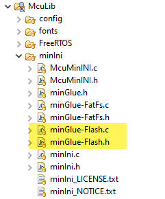 The minINI architecture includes a ‘glue’ interface. That way it can be easily adapted to different file systems. Below a ‘glue’ implementation for the FatFS: