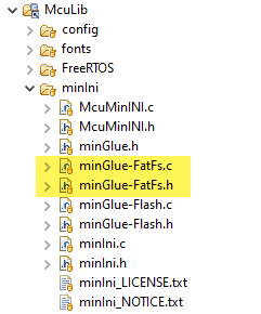The minINI architecture includes a ‘glue’ interface. That way it can be easily adapted to different file systems. Below a ‘glue’ implementation for the FatFS: