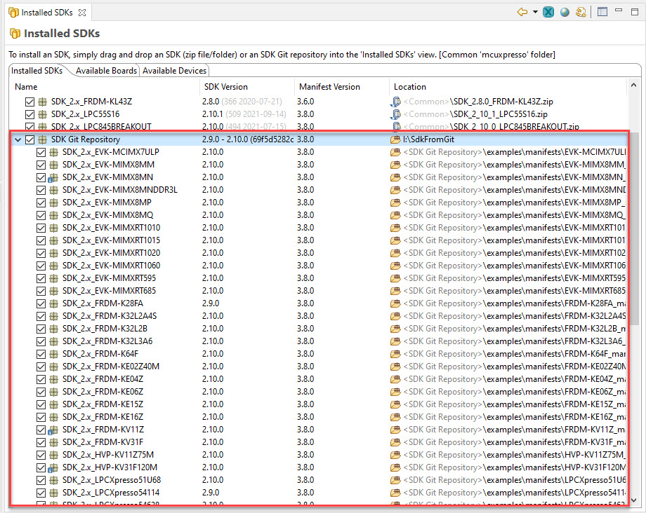 What I really like about that approach: it makes distribution of a SDK much easier in a class/lab environment, as I can ask students to import the SDK from a repository. And this makes things easier inside a company/development group too. The other benefit is: I don’t have to download each SDK as a package, I can get all of them if I want: