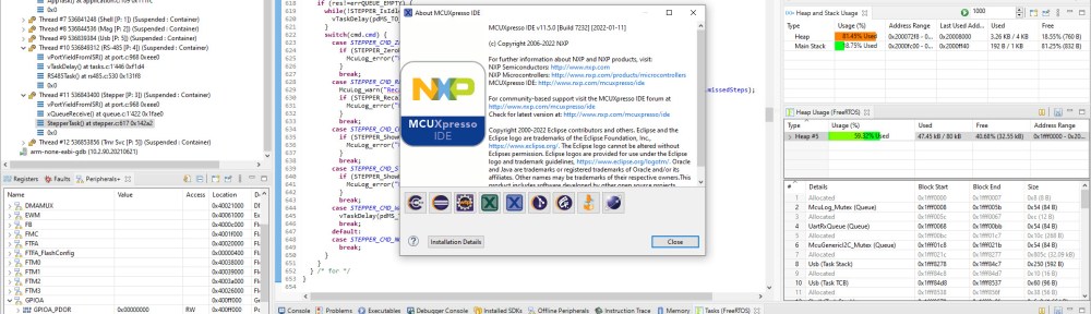 One of the really outstanding features of the is MCUXpresso IDE is its support for FreeRTOS. And the 11.5.0 comes with another cool feature for it: a view for FreeRTOS DTN (Direct Task Notification). DTN is a fast and lightweight feature in FreeRTOS to send notifications to a task. Because they are very useful and efficient, I’m usually prefer them over message queues or semaphore messages. But they are not easy to debug, but this changes with the new Task Notifications view.