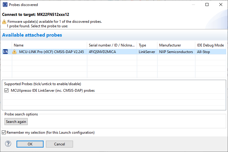 Notably it fixes a possible problem with SWO while using the MCULink-Pro energy/power measurement. And it shows now for an attached MCULink/Pro debug probe if firmware update is possible: