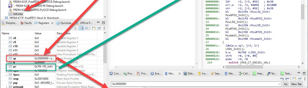 By default, the debugger cares about the initial register settings after connecting to the target. But for special cases like using a bootloader combined with a loaded application, this requires a bit more than the usually ‘standard procedure’. For example I need to set both a custom program counter (PC) and stack pointer (SP).