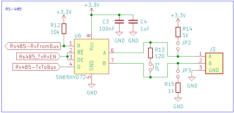 In most of my RS-485 projects I’m using the TI SN65HVD72 bus transceiver: