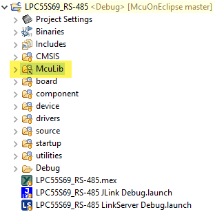 The RS-485 driver is inside McuLib\src\McuUART485.c, and configured through McuLib/config/McuUart485config.h