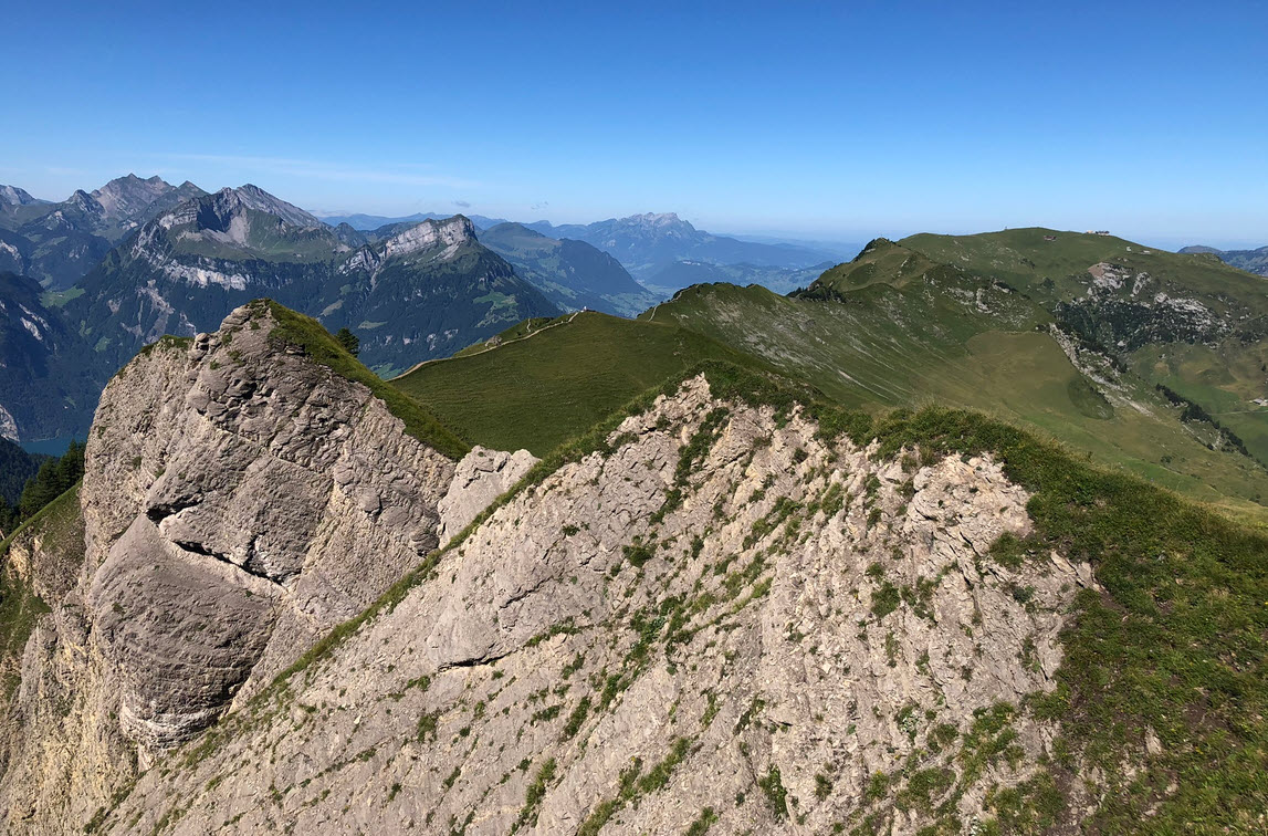 The ridge path linking the Fronalpstock and Klingenstock peak is one of the must stunning high trails in the central part of Switzerland. With views to many lakes and other peaks. With a duration of around 2 hours hiking time, and 400 meters up and down, it is a medium mountain hiking trail.