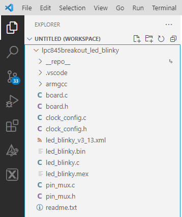 All the source files are visible with the Explorer view, which is usually used in VS Code to inspect the files: