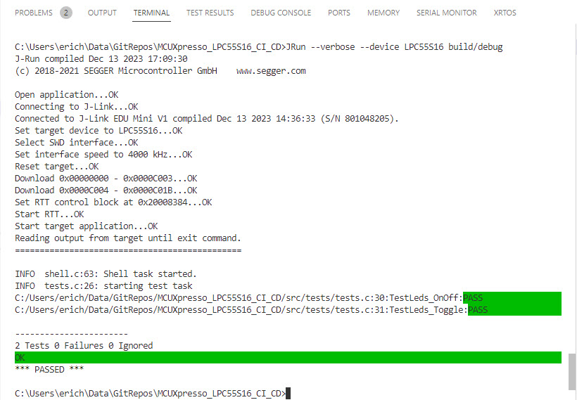 Thanks for the insightful post. I managed to setup a unit testing environment on target by using unity and Segger RTT for the LED Blinky example provided with NXP LPC55S16-EVK.