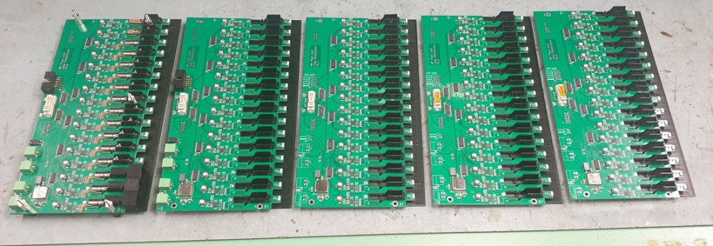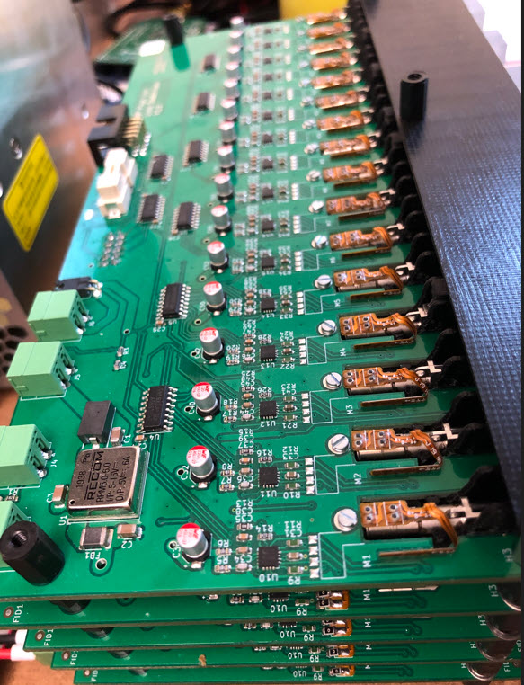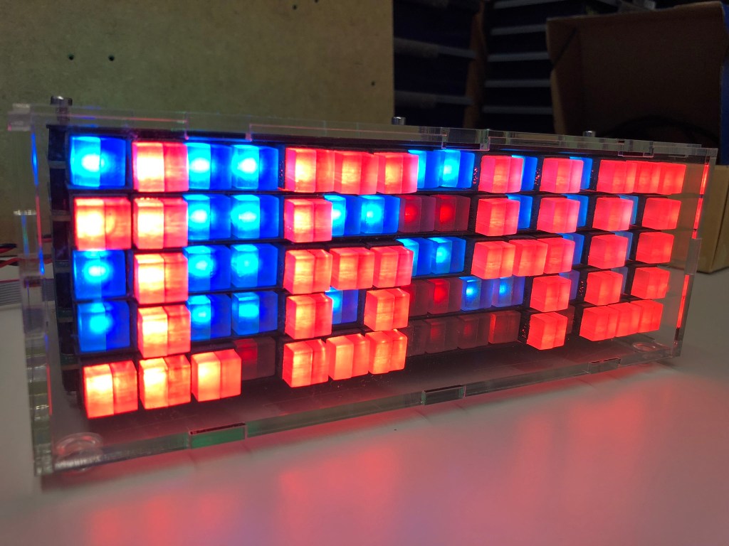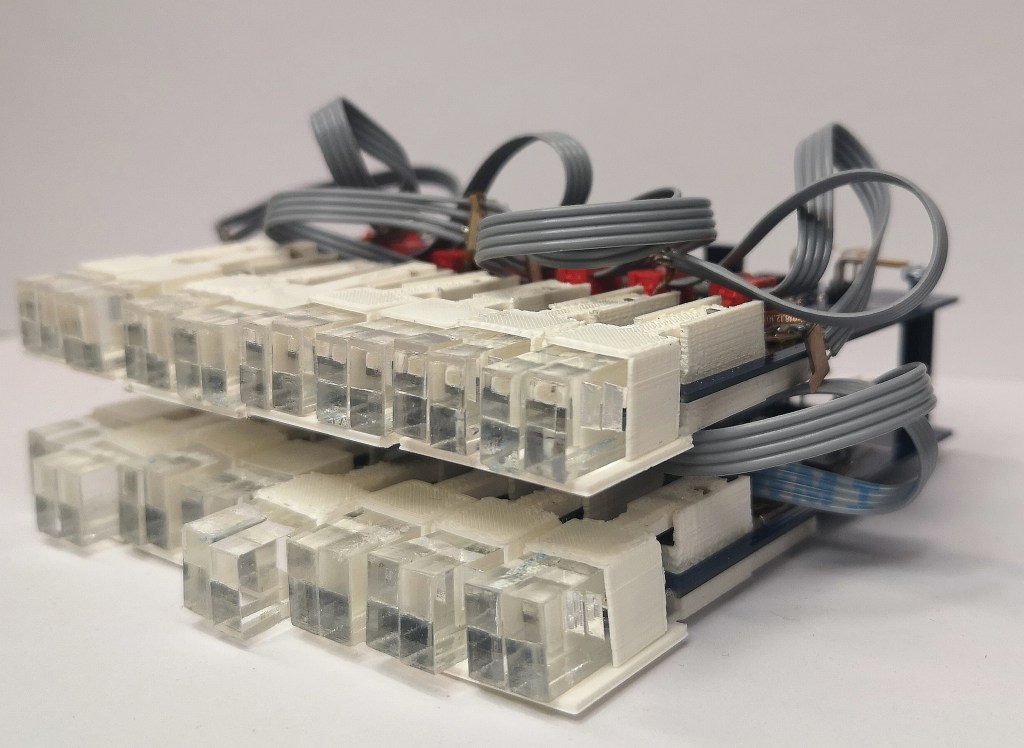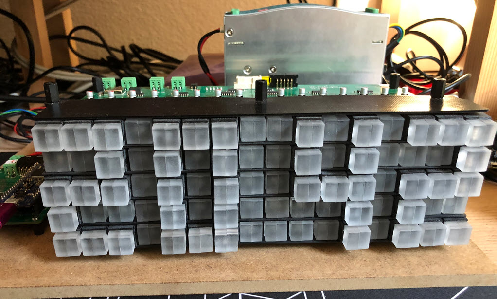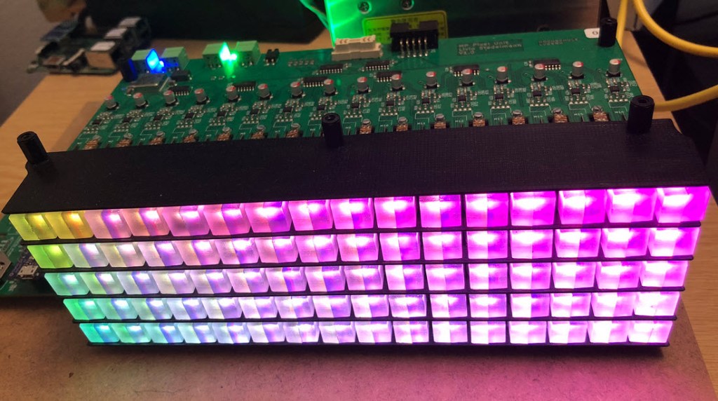 The matrix has 5 layers with 16 pixels in a row, with stacked PCBs each for 16 pixels in a row: