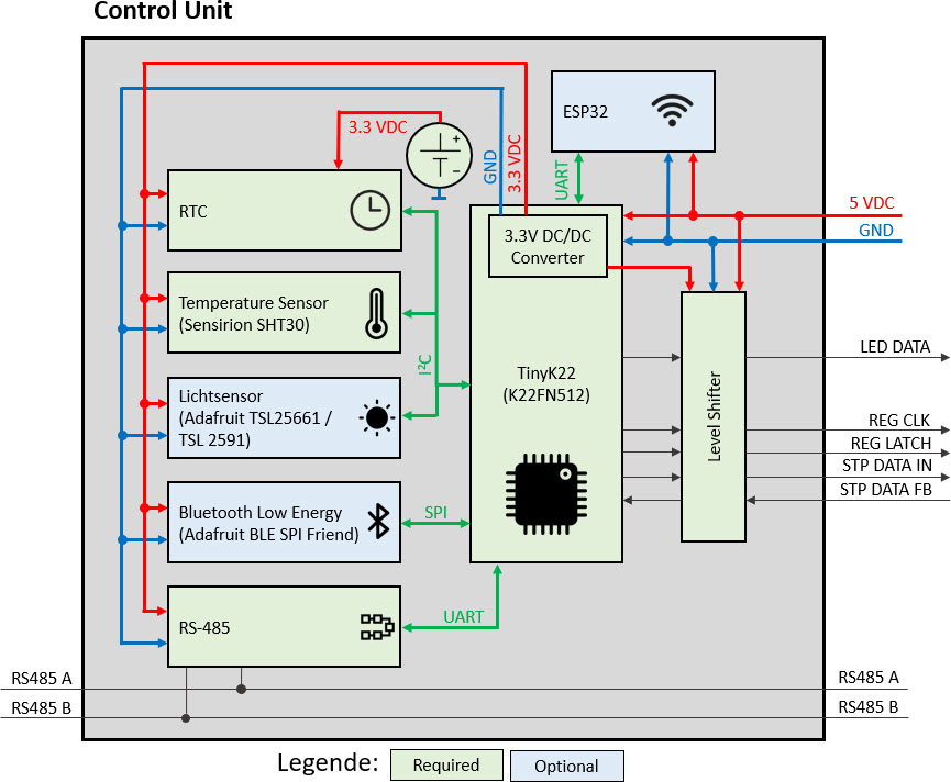 As main controller a tinyK22 is used (similar to the MetaClockClock project), with optional wireless interface: