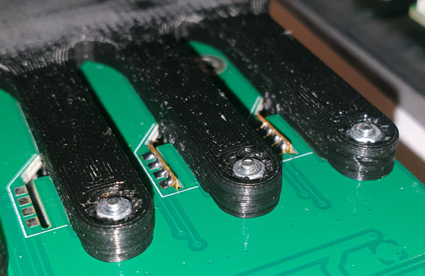 Backside of the PCB with the 3D printed motor holder: