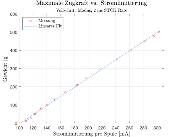 Testing showed that a single stepper motor is able to pull up to 500 g of weight without loosing steps: